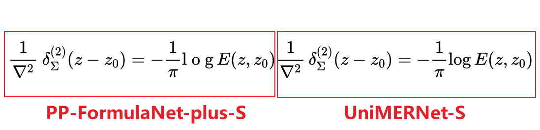 可以看到,PP-FormulaNet-Plus-S 虽然识别出了结果,但log的符号加了过多的装饰,整体效果不如 UniMERNet-S。