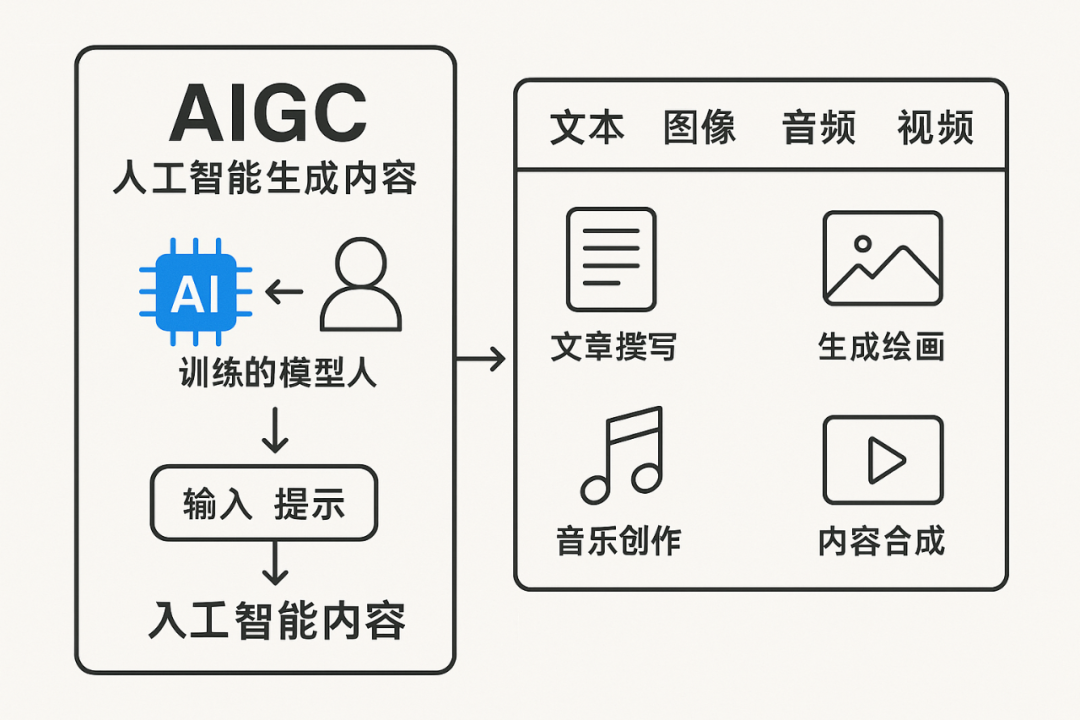 通俗地说,AIGC 就像一台“内容发动机”,输入需求或提示,输出完整的创作成果。