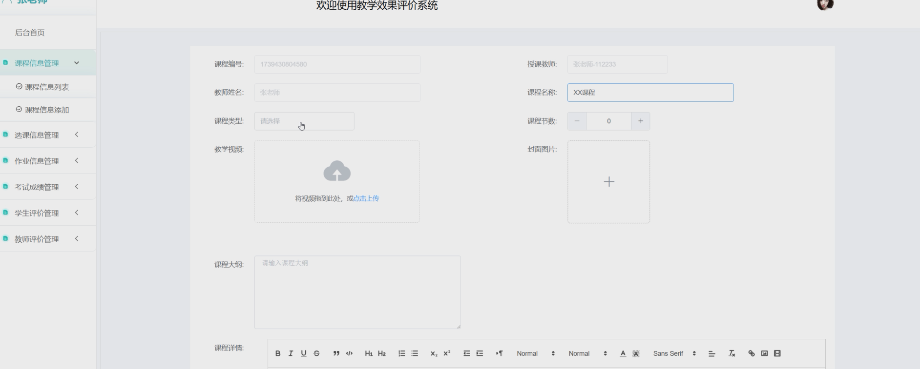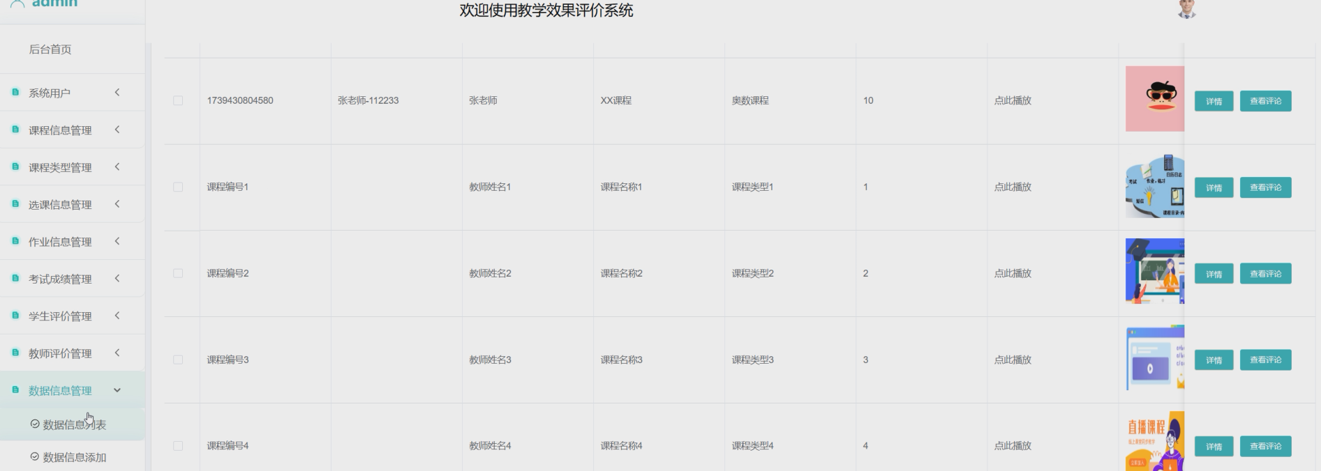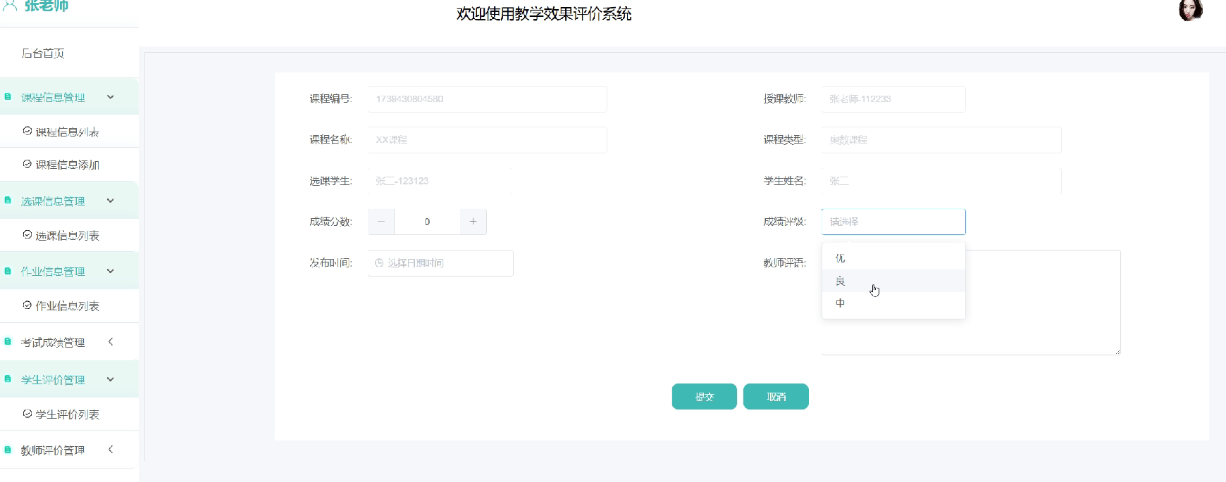 教师评价管理:管理学生对教师的评价,汇总反馈信息以改进教学。