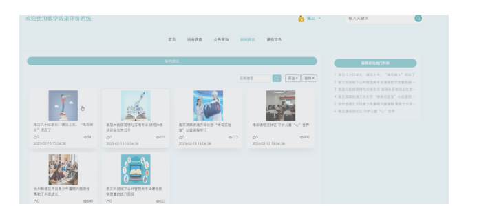In terms of data processing, the system utilizes crawler technology to crawl multimodal data from MOOC platforms, such as lecture videos, course titles, courseware, course evaluations and ratings, etc., aggregating different types of educational data. These data have been visualized and analyzed to help users clearly understand course effectiveness, teaching quality, and student needs. For example, by using data visualization charts to display trends in student evaluations, the correlation between teachers' teaching effectiveness and student performance, etc., data support can be provided for educational decision-making. The real-time updating and accuracy of data ensure the efficiency and practicality of the system, and improve the accuracy of teaching effectiveness evaluation.