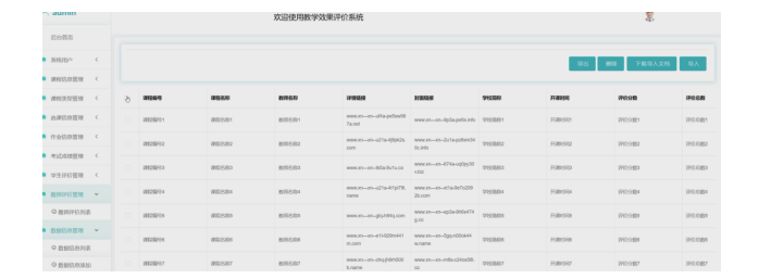 管理员可对教师评价进行查看、下载、导入导出、添加、删除等操作。如下图所示