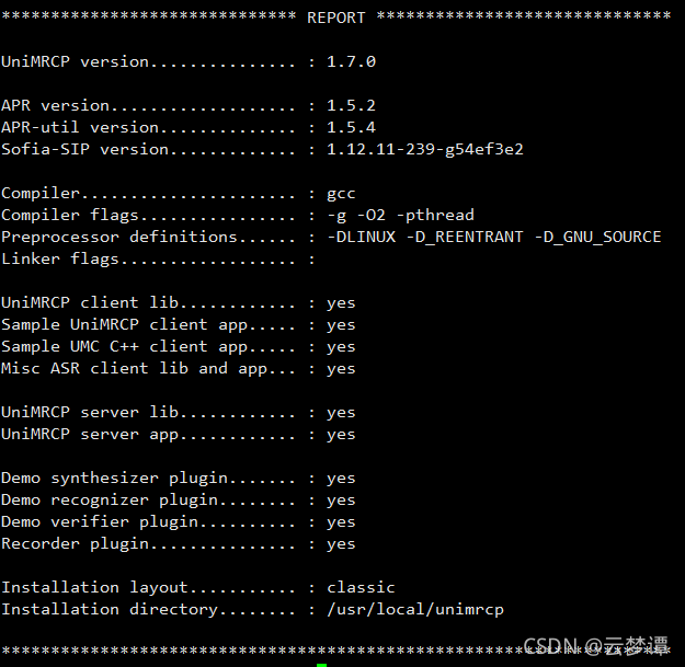 默认安装到 /usr/local/unimrcp, 按自己偏好设置prefix