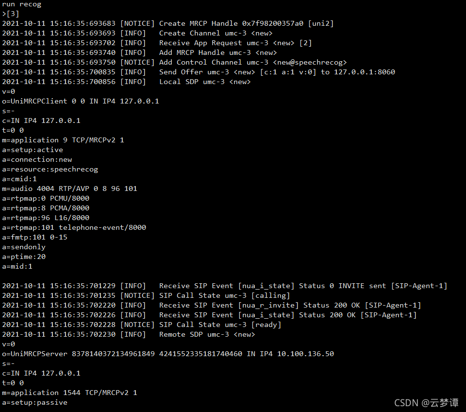 Client端预设了几个CLI命令,提供几个MRCP测试场景: