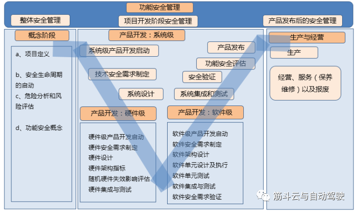 功能安全管理:为产品开发的每个阶段建立安全开发管理架构,包括整体安全管理、项目开发阶段的安全管理和产品发布后的安全管理。