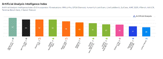 该模型可达到极高的吞吐量效率,在 Artificial Analysis Intelligence Index 上成绩领先,并且在 Artificial Analysis Openness Index 上保持了与 NVIDIA Nemotron Nano V2 相同的分数。这充分展现了其在多智能体任务中的高效性,同时兼具透明度与可定制性。